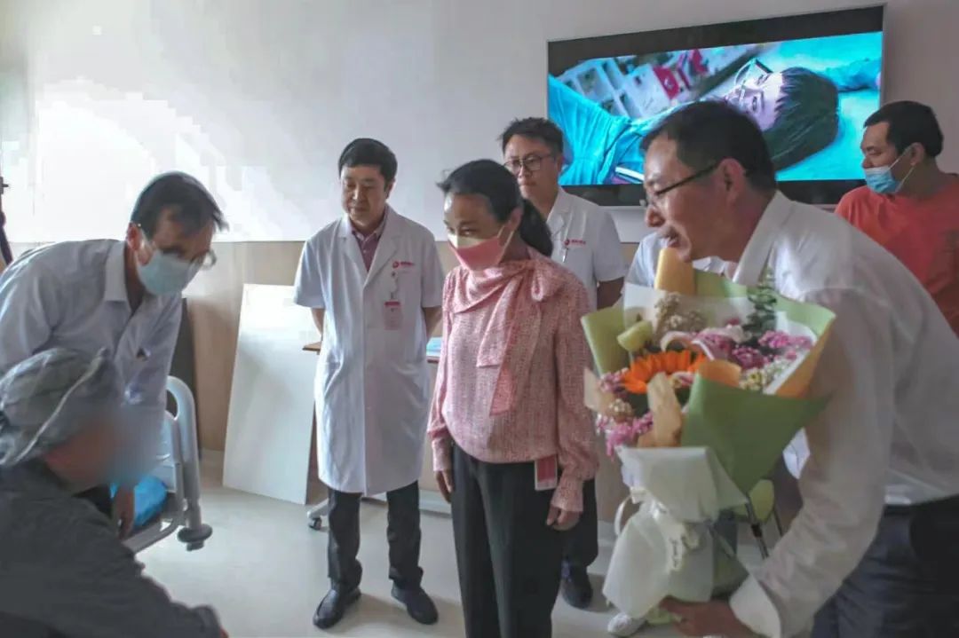 護(hù)士節(jié)前一日李女士出院時(shí),國(guó)際醫(yī)學(xué)副董事長(zhǎng)王愛萍、腦科醫(yī)院副院長(zhǎng)賀世明為她送上鮮花和救助金,希望她早日康復(fù),和抗疫中千千萬(wàn)萬(wàn)的白衣天使一樣,繼續(xù)發(fā)光發(fā)熱。
