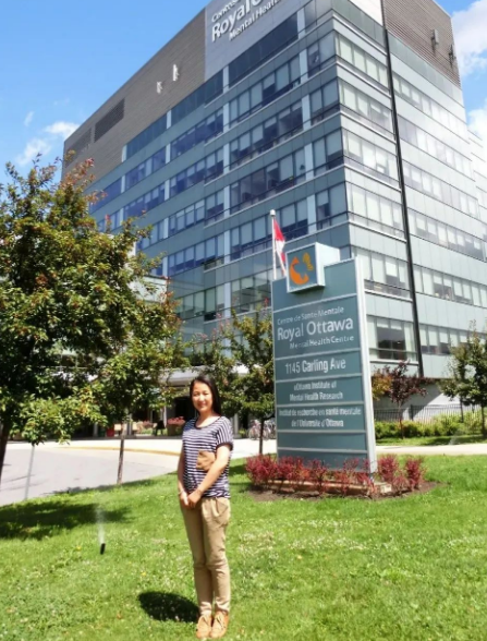 經(jīng)過兩年的臨床一線工作,王瑩在心身疾病治療方面不斷積累經(jīng)驗,總結(jié)提高。“一個偶然的機(jī)會,我?guī)煾档膸煾?,精神醫(yī)學(xué)專業(yè)的一個牛人,加拿大渥太華大學(xué)張遐教授剛好有一個抑郁相關(guān)的研究課題,江文教授推薦了我?!眱赡昵安┦空n題的不足讓王瑩很快做了決定,2013年2月份啟程前往加拿大渥太華大學(xué)攻讀博士后。