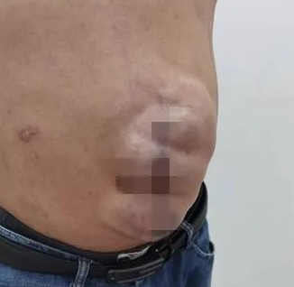 抱著一絲希望,小李慕名找到西安國際醫(yī)學(xué)中心醫(yī)院消化病醫(yī)院消化外科二病區(qū)蔡磊主任。蔡磊接診后結(jié)合小李病史、病情,診斷為“腹膜間皮瘤術(shù)后復(fù)發(fā),切口疝”。