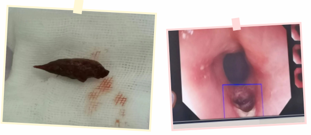 入院后,經(jīng)過相關(guān)檢查,楊奶奶被診斷為食管異物穿孔、肺部感染。