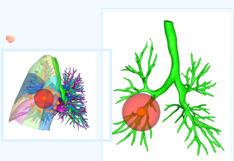 據(jù)王武平主任介紹,胸外科團(tuán)隊(duì)目前已常規(guī)開展不同部位肺小結(jié)節(jié)的聯(lián)合肺亞段切除術(shù),為肺小結(jié)節(jié)患者提供個(gè)體化的治療。術(shù)前進(jìn)行三維重建,以磨玻璃結(jié)節(jié)為中心,勾勒出病灶周圍2cm切緣球,規(guī)劃切除范圍和路徑,保證足夠切緣,實(shí)現(xiàn)肺結(jié)節(jié)的精準(zhǔn)切除和患者快速康復(fù),該技術(shù)既能實(shí)現(xiàn)肺結(jié)節(jié)的切除治愈,又能最大程度保留患者的肺功能,是目前針對(duì)早期肺磨玻璃結(jié)節(jié)肺癌較先進(jìn)的外科診療技術(shù)。