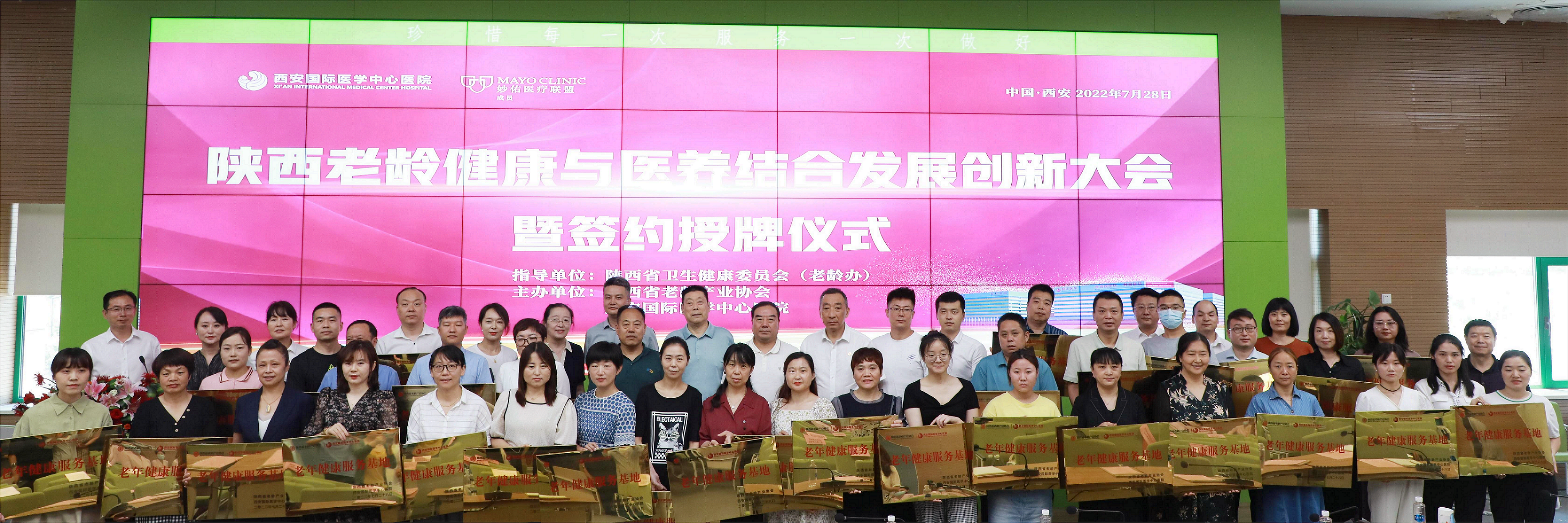本次大會,陜西省老齡產業(yè)協(xié)會與西安國際醫(yī)學中心醫(yī)院完成簽約、授牌,協(xié)會授予醫(yī)院“老年健康服務中心”牌匾;同時協(xié)會、醫(yī)院分別與36家養(yǎng)老機構完成簽約、授牌,各機構成為醫(yī)院“老年健康服務基地”。