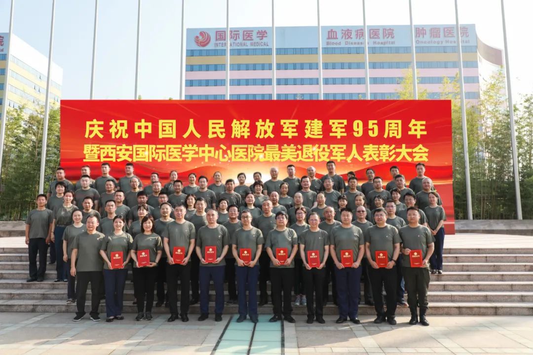為慶祝中國(guó)人民解放軍建軍95周年,繼承和發(fā)揚(yáng)革命軍人的光榮傳統(tǒng)和優(yōu)良作風(fēng),西安國(guó)際醫(yī)學(xué)中心醫(yī)院舉辦了系列活動(dòng),包括“最美退役軍人表彰會(huì)”、“我是退役軍人,我在崗”、“送醫(yī)送藥送健康”義診等,動(dòng)員和激勵(lì)廣大退役軍人不忘初心、奮發(fā)有為,投身醫(yī)院發(fā)展建設(shè),建功新時(shí)代。西安國(guó)際醫(yī)學(xué)中心醫(yī)院有部隊(duì)工作經(jīng)歷的2100余人,其中,曾在部隊(duì)醫(yī)院工作過的1900余人,高職人員占20.5%,碩士以上學(xué)歷人員占66.7%,碩、博士生導(dǎo)師占24.9%。醫(yī)院退役軍人近200人,今天,這個(gè)表彰會(huì)就是為了表彰他們中的杰出代表。