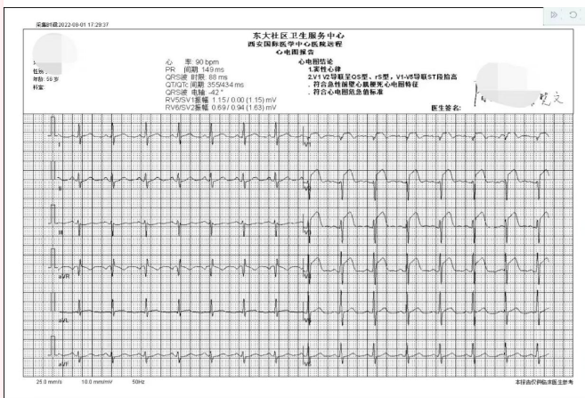56歲的陳先生,因胸部燒灼感,胸部不適到東大社區(qū)衛(wèi)生服務(wù)中心就診。“考慮到疼痛區(qū)域在胸部,值班醫(yī)生張敏利做了急診心電圖,上傳西安國際醫(yī)學(xué)中心醫(yī)院遠(yuǎn)程心電診斷中心,網(wǎng)上遠(yuǎn)程心電圖2分鐘后反饋:結(jié)合患者癥狀,心電圖特征提示急性前壁心梗心電圖表現(xiàn),報(bào)危急值?!?