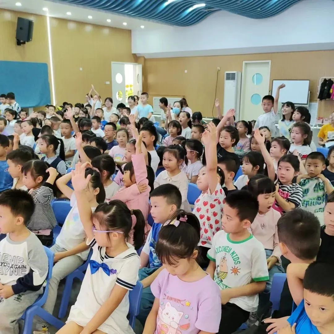 孩子們在臺下認真聽講,舉手發(fā)言,在輕松愉悅的氛圍中懂得怎樣愛牙護牙。
