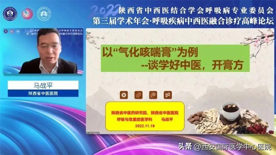 11月19日,由陜西省中西醫(yī)結(jié)合學(xué)會(huì)主辦、陜西省中西醫(yī)結(jié)合學(xué)會(huì)呼吸疾病專業(yè)委員會(huì)和西安國(guó)際醫(yī)學(xué)中心醫(yī)院聯(lián)合承辦的“陜西省中西醫(yī)結(jié)合學(xué)會(huì)呼吸病專委會(huì)第三屆學(xué)術(shù)年會(huì)暨2022呼吸疾病中西醫(yī)融合診療高峰論壇”在我院舉行,會(huì)議采取線上 線下相結(jié)合的方式,由大會(huì)主席、西安國(guó)際醫(yī)學(xué)中心醫(yī)院胸科醫(yī)院院長(zhǎng)吳昌歸主持。
