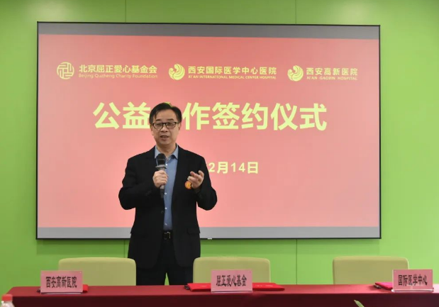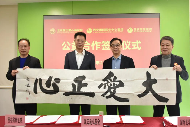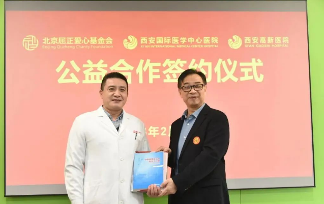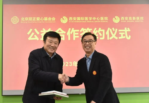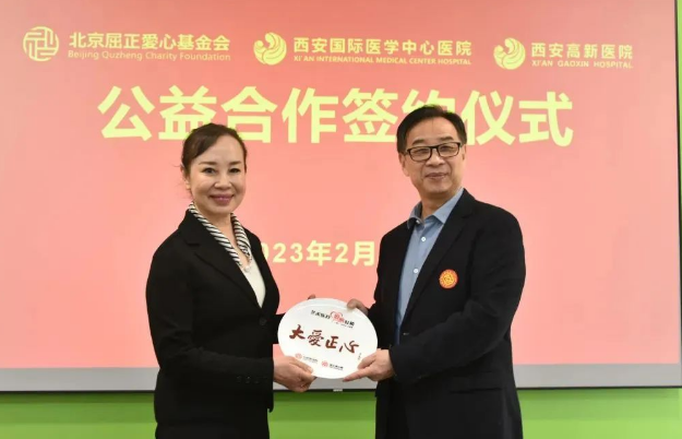 2月14日上午,西安國際醫(yī)學(xué)中心醫(yī)院、西安高新醫(yī)院與北京屈正愛心基金會(huì)公益合作簽約儀式在西安國際醫(yī)學(xué)中心醫(yī)院保障樓舉行,北京屈正愛心基金會(huì)創(chuàng)始人屈正、理事魏曉輝,國際醫(yī)學(xué)副總裁孫文國,西安國際醫(yī)學(xué)中心醫(yī)院院長尹強(qiáng),西安高新醫(yī)院總經(jīng)理范郁會(huì)、院長宋瑛及醫(yī)院相關(guān)部室、專科醫(yī)院負(fù)責(zé)人等出席活動(dòng),西安國際醫(yī)學(xué)中心醫(yī)院副院長付強(qiáng)主持儀式。