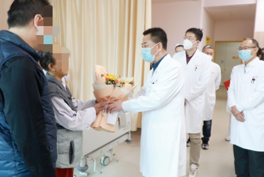 2023年1月31日,西安國際醫(yī)學中心醫(yī)院消化外科三病區(qū),劉延彤副院長、李國才主任、主管醫(yī)生許澤宇以及科室醫(yī)護團隊,共同為當日出院的李虹(化名)送上鮮花,向他們送上最誠摯的祝福。