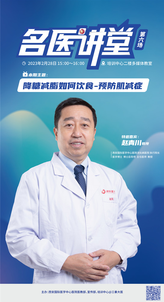 2月28日,消化病醫(yī)院執(zhí)行院長(zhǎng)趙青川教授做客《名醫(yī)講堂》第六期,以“降糖減脂和預(yù)防肌減癥”為主題,為各專(zhuān)科醫(yī)院、科室中青年醫(yī)師分享了自己在肌減癥疾病認(rèn)識(shí)及飲食調(diào)節(jié)方面的經(jīng)驗(yàn)。