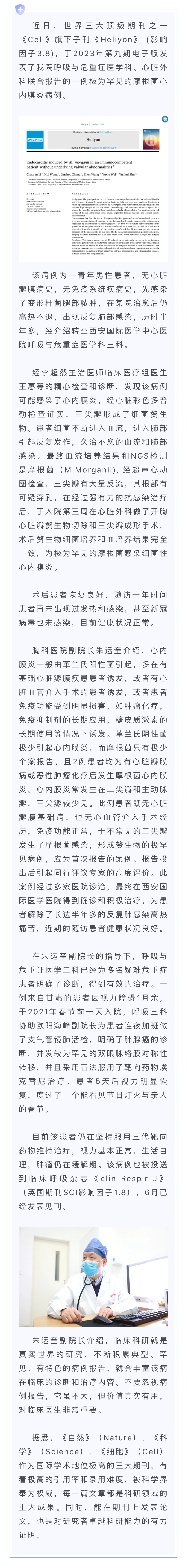 我院呼吸內(nèi)科在《Cell》旗下子刊《Heliyon》報(bào)告一例極為罕見的摩根菌心內(nèi)膜炎病例
