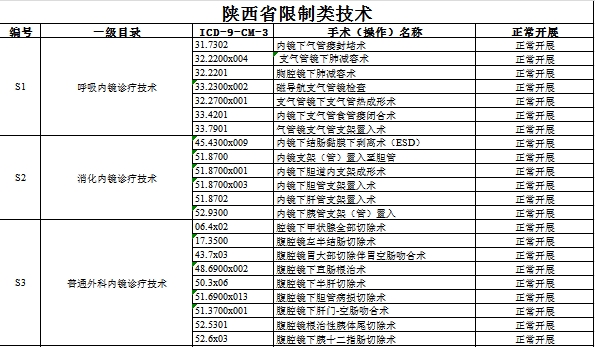 根據(jù)《醫(yī)療技術臨床應用管理辦法》、《國家衛(wèi)生健康委辦公廳關于印發(fā)國家限制類技術目錄和臨床應用管理規(guī)范(2022年版)的通知》及《陜西省醫(yī)療技術臨床應用管理辦法實施細則 (陜衛(wèi)醫(yī)發(fā)〔2020〕64號 )》等文件要求,醫(yī)教部于前期梳理各科室上報材料,并組織院級醫(yī)療技術管理委員會審核論證,對于我院已開展的國家級和省級限制類技術已完成備案工作?,F(xiàn)將我院已開展的限制類技術公布如下。