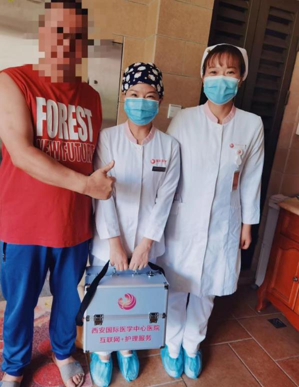 正在家人為此發(fā)愁的時候,一次偶然的機會,了解到西安國際醫(yī)學中心醫(yī)院互聯(lián)網(wǎng) 居家護理服務,便毫不猶豫地預約了專科護士為其進行更換胃管及灌腸。居家護理前,護士在平臺上詳細了解林爺爺?shù)那闆r,并與家屬溝通,充分的用物準備,專用的居家護理箱,兩位專科護士核對患者身份、進行專業(yè)性評估,細心地完成了胃管的更換和通便灌腸護理。之后,護士不僅耐心解答患者和家屬的疑惑,還告訴家屬如何在家?guī)土譅敔斶M行便秘的預防辦法。嫻熟的技術、專業(yè)的護理、規(guī)范的服務,得到家屬一致的贊賞。護理期間平臺全程追蹤,護理過程非常順利,林爺爺及其家屬露出了舒心的笑容,連連表示感謝,并由衷地贊嘆居家護理真正地幫助了患者,也方便了家屬!
