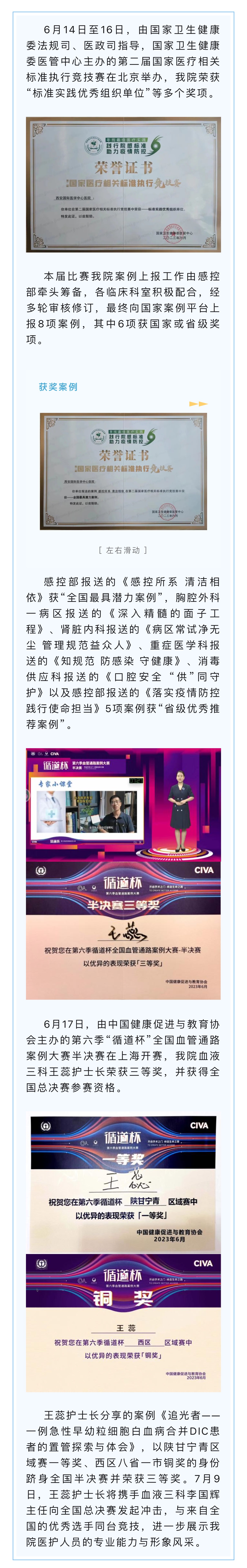 我院在第二屆國家醫(yī)療相關(guān)標(biāo)準(zhǔn)執(zhí)行競技賽及第六季“循道杯”全國血管通路案例大賽中獲多個獎項