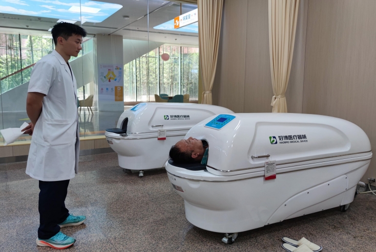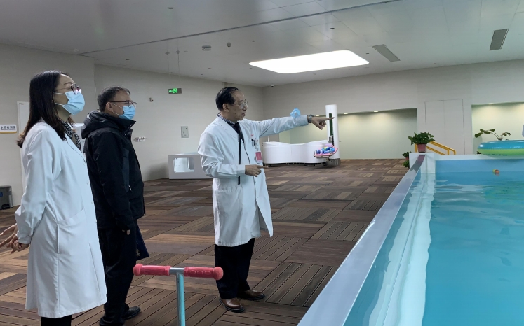 會后,牛部長一行參觀了醫(yī)院成人康復部的肌骨與臟器康復治療區(qū)、水療康復區(qū)、中藥熏蒸室。期間張正湘院長詳細介紹了我院康復部的優(yōu)勢科室、先進儀器、構(gòu)思設(shè)計及特色醫(yī)療服務。牛部長一行對我院工傷保險工作所做出的努力和取得的成績給予了高度評價,并對醫(yī)院先進的醫(yī)療設(shè)備、溫馨的就醫(yī)環(huán)境、人性化的醫(yī)療服務贊不絕口。并希望與醫(yī)院加強工傷醫(yī)療康復的合作意愿,為廣大工傷患者提供更優(yōu)質(zhì)的服務。