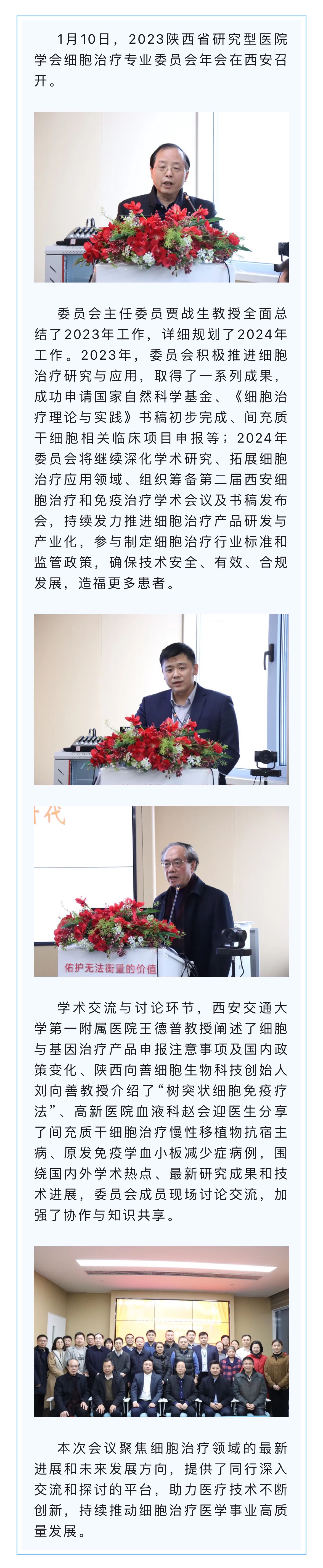 陜西省研究型醫(yī)院學(xué)會(huì)細(xì)胞治療專業(yè)委員會(huì)年會(huì)在西安召開