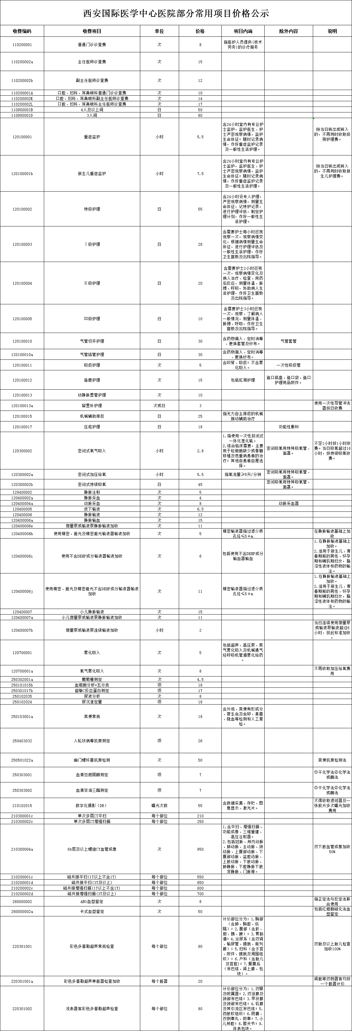 西安國際醫(yī)學(xué)中心醫(yī)院部分常用項(xiàng)目價(jià)格公示