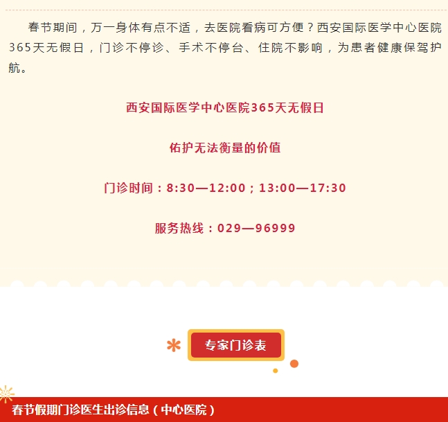 為健康守歲!速速收藏春節(jié)專家門診表