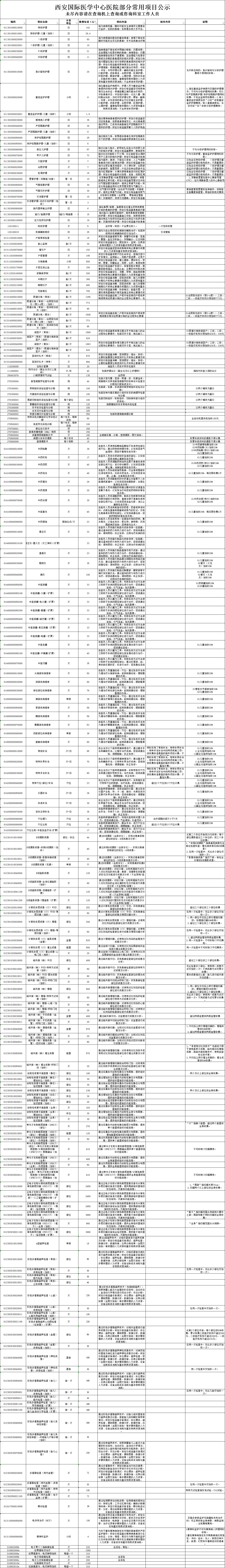 西安國際醫(yī)學(xué)中心醫(yī)院部分常用項(xiàng)目公示