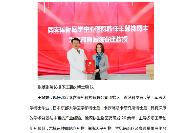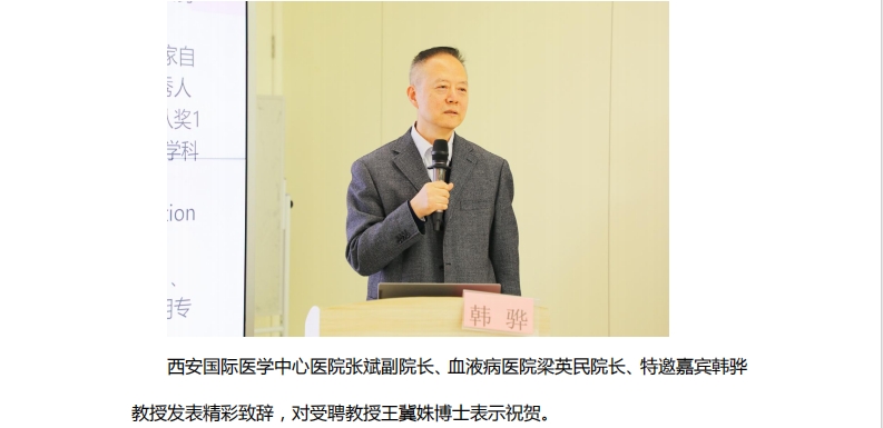 王冀姝博士受聘為西安國際醫(yī)學(xué)中心醫(yī)院血液病醫(yī)院客座教授