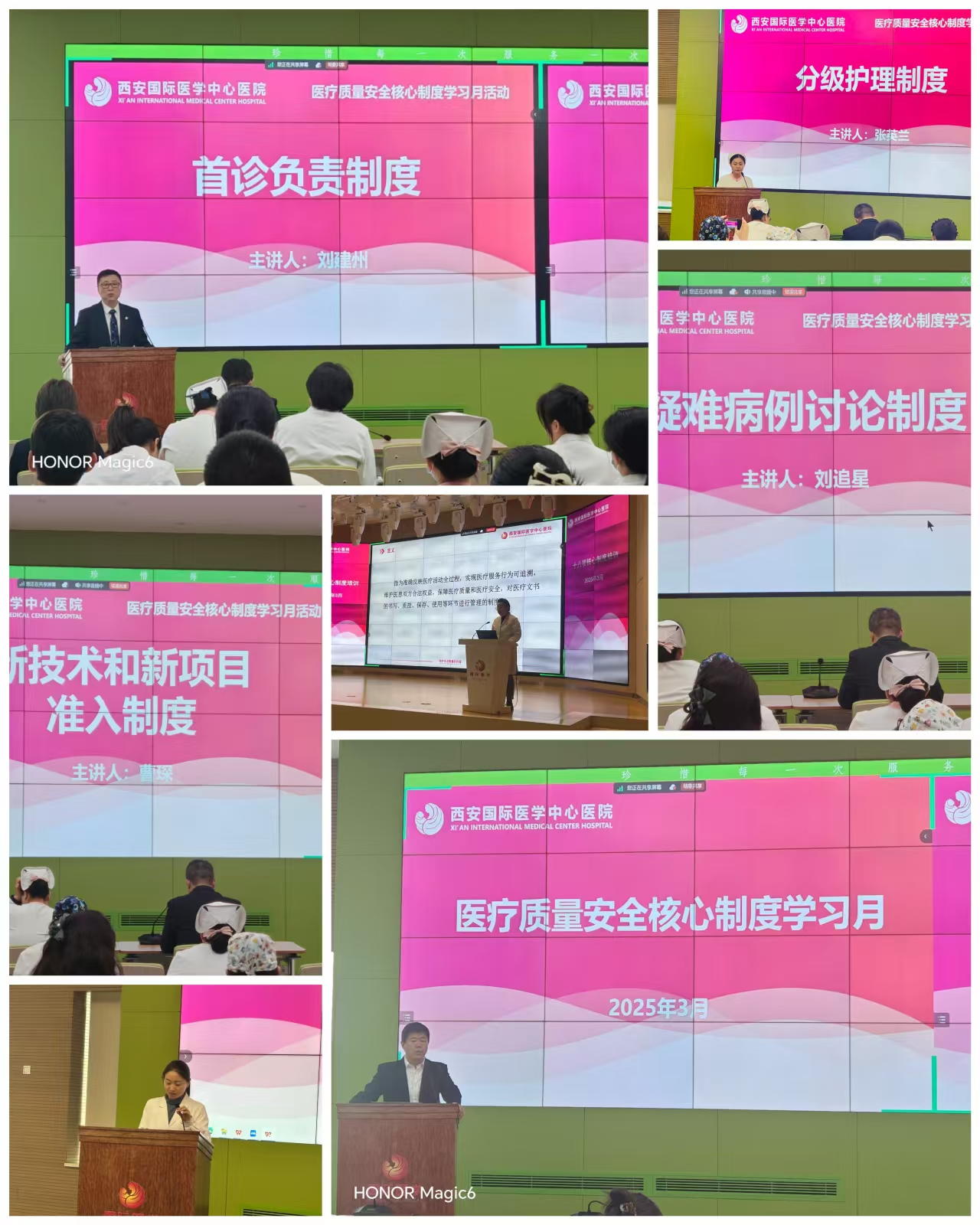首場(chǎng)培訓(xùn)就《首診負(fù)責(zé)制》、《三級(jí)查房制度》、《術(shù)前討論制度》及《手術(shù)安全核查制度》重點(diǎn)內(nèi)容進(jìn)行講解。后續(xù)培訓(xùn)分別于3月14日、3月20日、3月28日召開,14位講者工作經(jīng)驗(yàn)和實(shí)際案例,系統(tǒng)解讀了相關(guān)核心制度的內(nèi)涵和重要意義,從制度背景、制定目的到實(shí)際執(zhí)行中的難點(diǎn)和對(duì)策,層層遞進(jìn)地分析了制度落實(shí)的核心要點(diǎn)和關(guān)鍵環(huán)節(jié)。