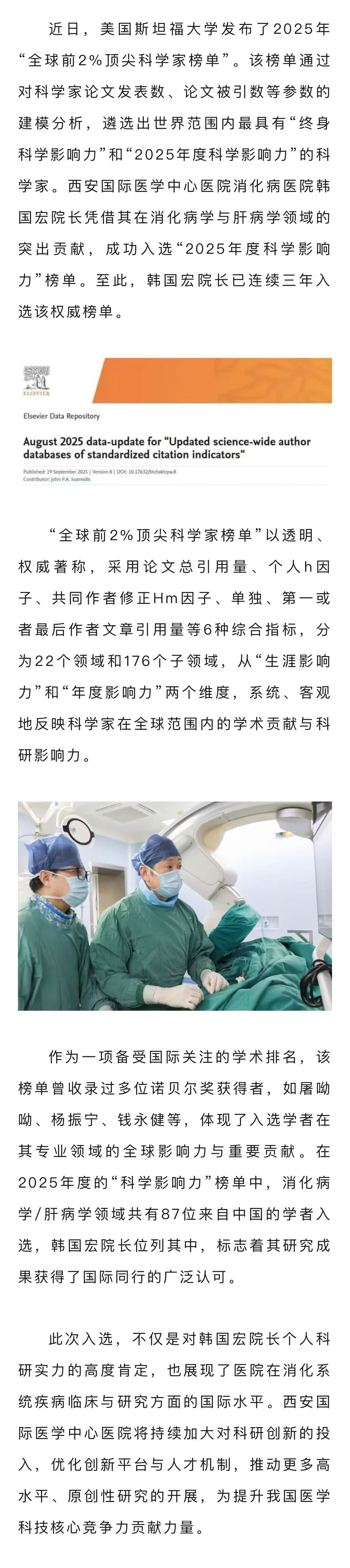消化病醫(yī)院韓國(guó)宏院長(zhǎng)入選2025年“全球前2%頂尖科學(xué)家榜單”
