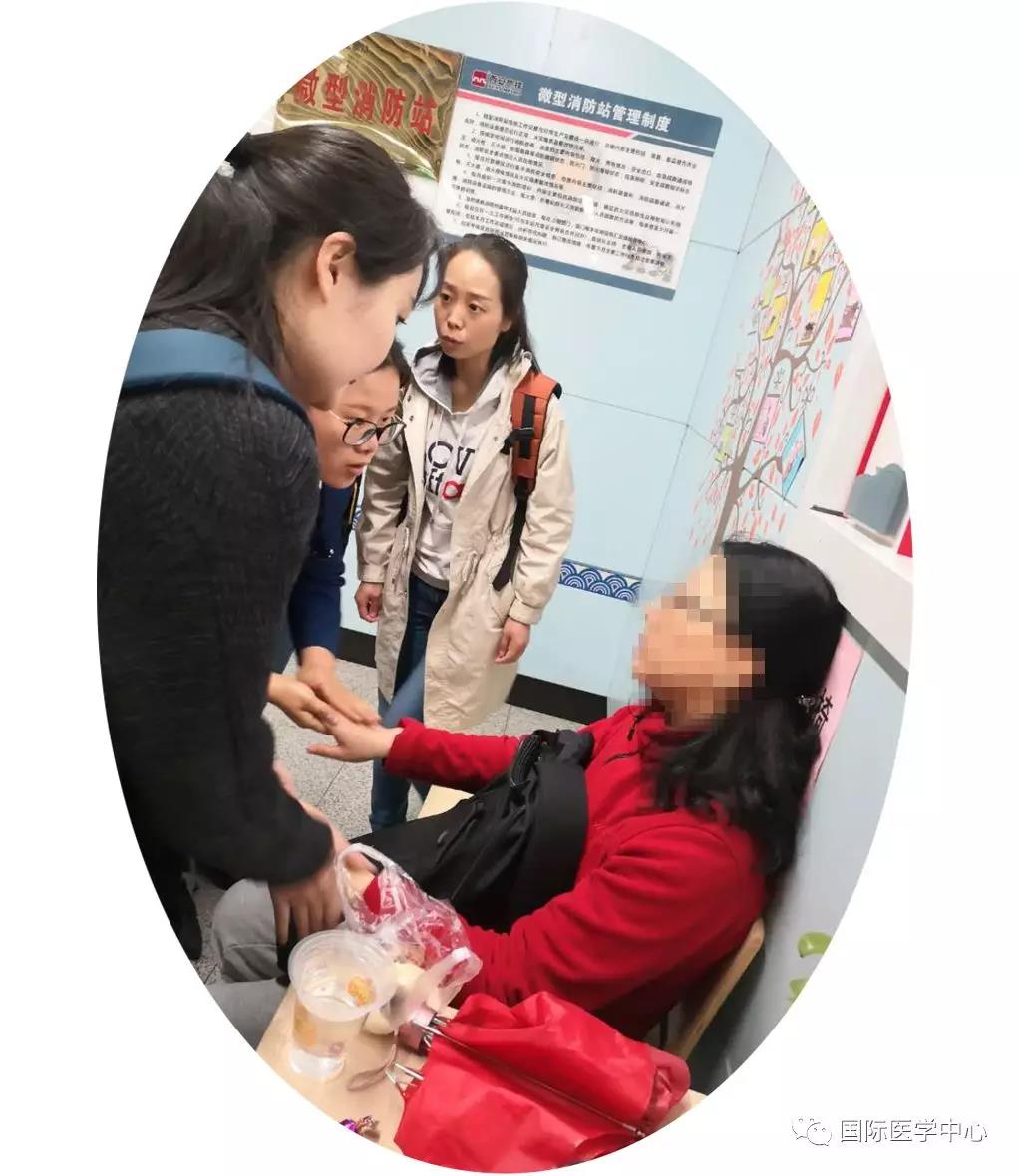 救助點(diǎn)上,一位女士正癱坐在椅子上。經(jīng)初步檢查,該女士面色蒼白、全身發(fā)麻、心慌胸悶、雙手冰涼、心率達(dá)90次/分。經(jīng)詢問得知,患者一個(gè)月前診斷患有冠心病。西安國際醫(yī)學(xué)中心神經(jīng)疾病醫(yī)院護(hù)士長徐妍、胸科醫(yī)院門診護(hù)士長馬苗苗陪伴在患者身旁,遞上水和糖塊,喂給患者,不停地為她揉搓雙手促進(jìn)血液循環(huán),并借來外套保暖,反復(fù)安慰。在大家的安撫下,患者情緒逐漸平穩(wěn)下來。隨后,她倆又與地鐵工作人員聯(lián)系了患者家屬與醫(yī)院。